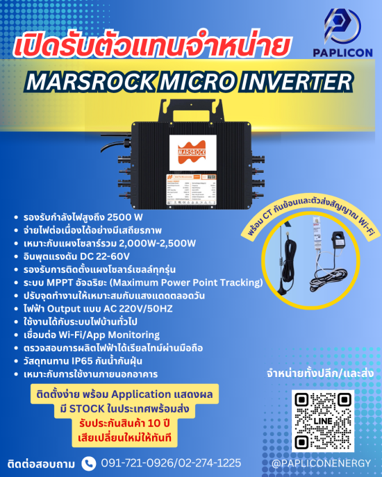 ✔ Micro Inver แบรนด์ MarsRock ขนาด 2.5 kw รับประกันนาน 10 ปี ผ่านการทดสอบจากการไฟฟ้า ทั้ง MEA และ PEA